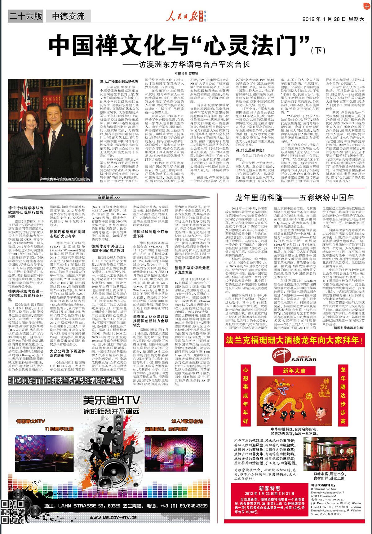 《人民日报》海外版欧洲刊 2012-1-28 第20期 第26版