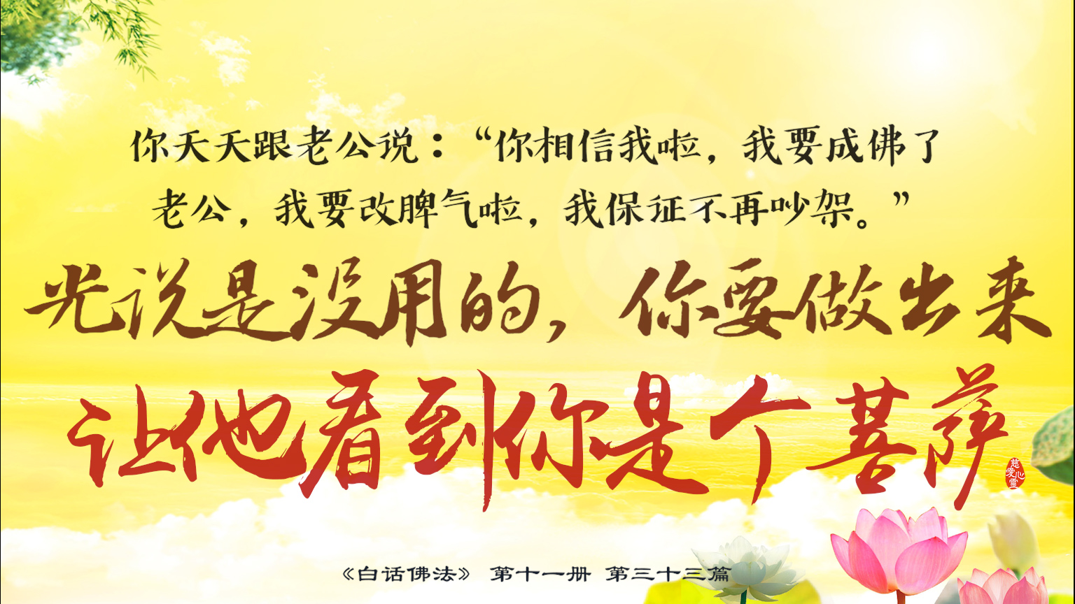 不限会员 11-33-9 天天跟老公说:“你相信我啦,我要成佛了。老公,我要改脾气啦,我保证不再吵架。”光说是没用的,你要做出来,让他看到你是个菩萨。【图】