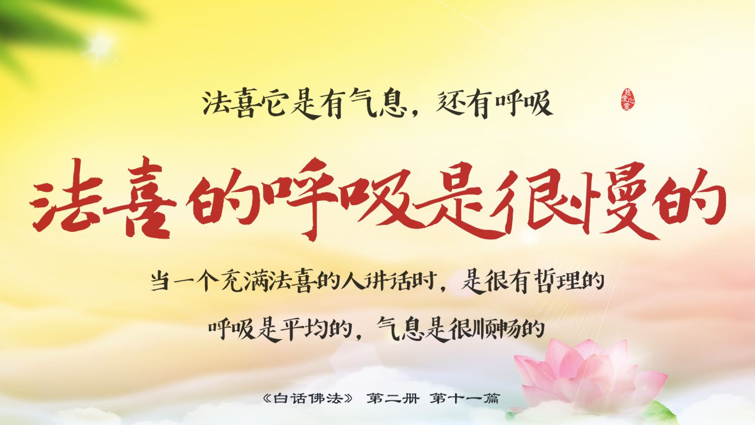 不限会员 2-11-16 法喜它是有气息,还有呼吸,法喜的呼吸是很慢的。 当一个充满法喜的人讲话时,是很有哲理的,呼吸是平均的,气息是很顺畅的。.【图】