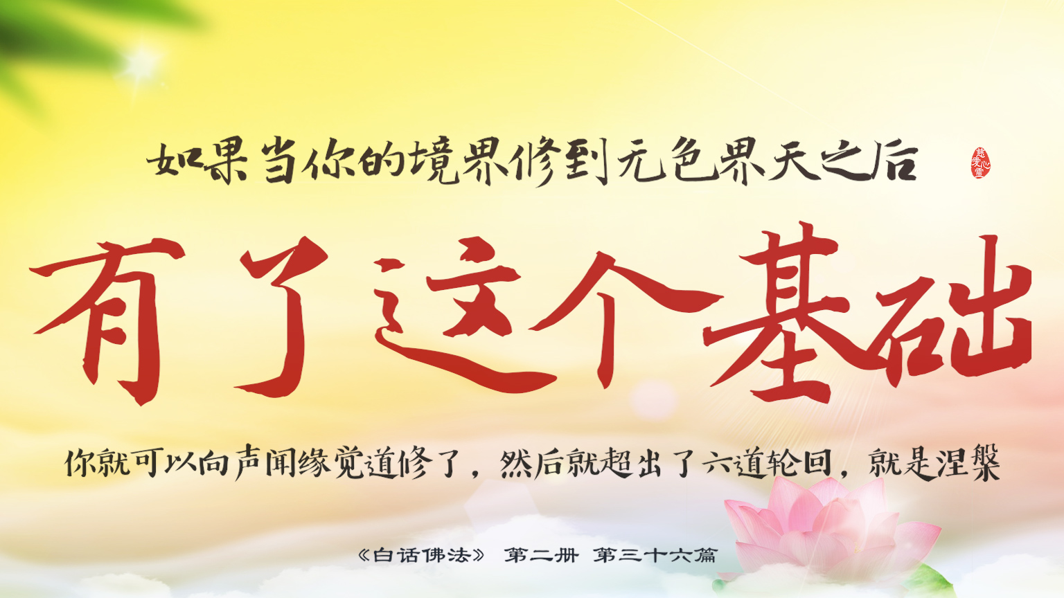 不限会员 2-36-14 如果当你的境界修到无色界天之后,有了这个基础,你就可以向声闻缘觉道修了,然后就超出了六道轮回,就是涅槃。.【图】