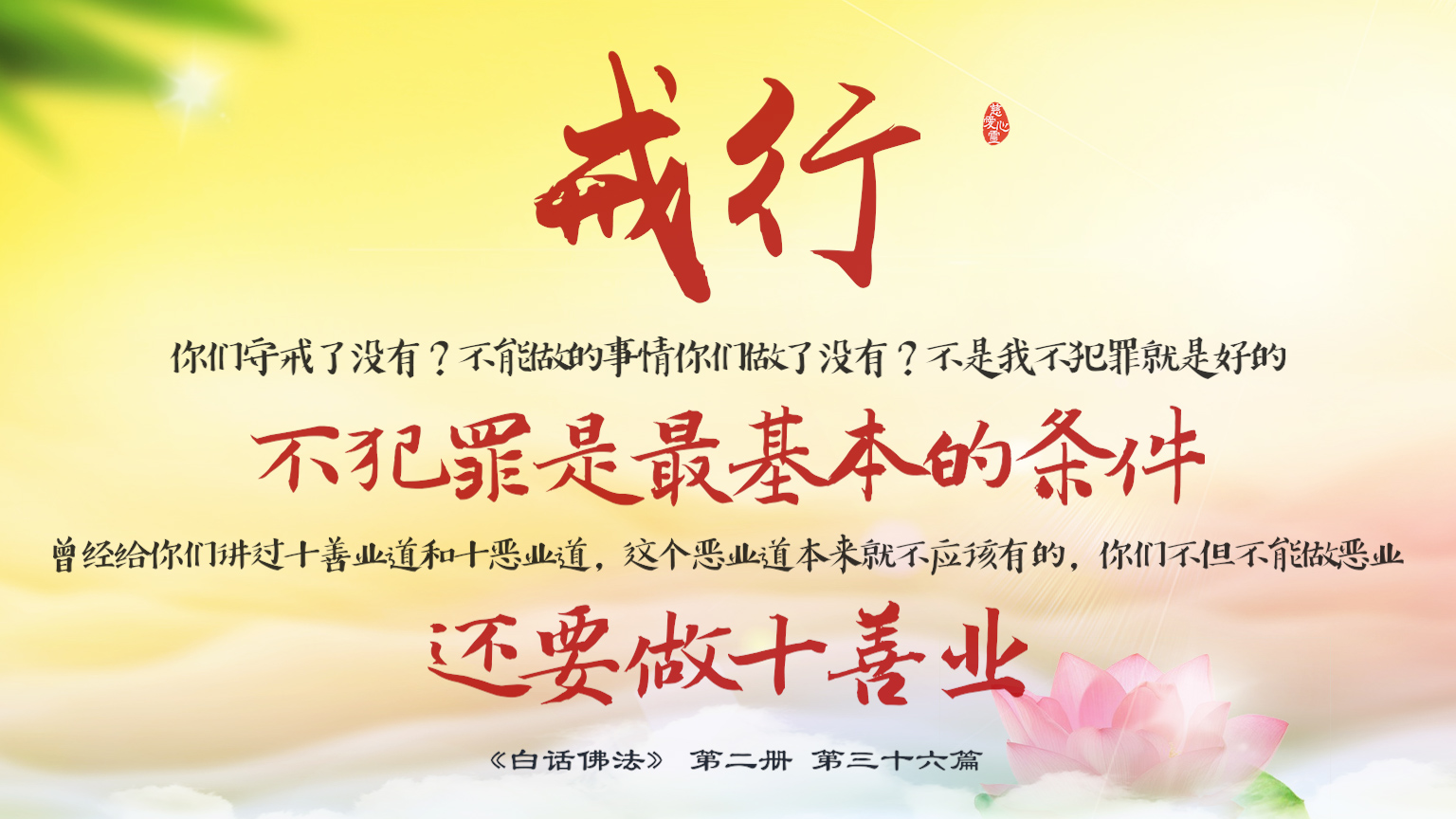 不限会员 2-36-19 戒行,你们守戒了没有?不是我不犯罪就是好的,不犯罪是最基本的条件,曾经给你们讲过十善业道和十恶业道,这个恶业道本来就不应该有的,你们不但不能做恶业,还要做十善业.【图】