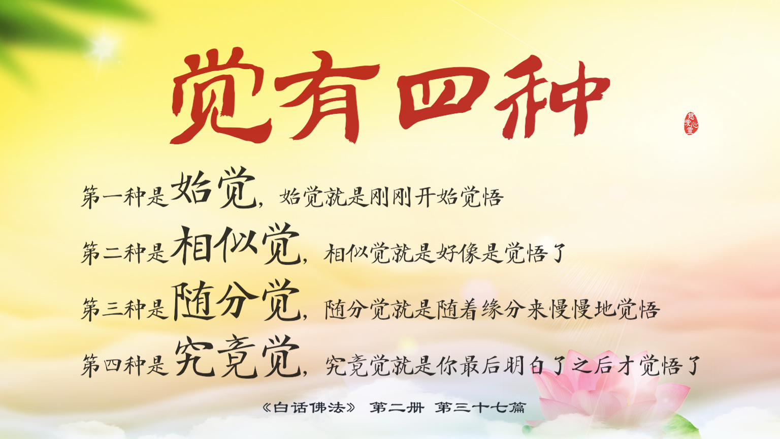 不限会员 2-37-39觉有四种:第一种是始觉...就是刚刚开始觉悟;第二种是相似觉...就是好像是觉悟了;第三种是随分觉...就是随着缘分来慢慢地觉悟;第四种是究竟觉...就是你最后明白了之后才觉悟了.【图】