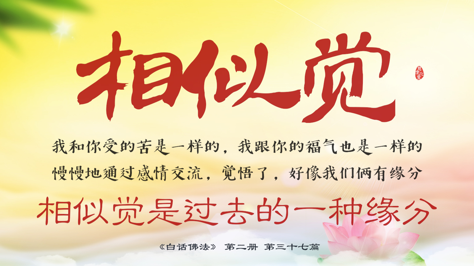 不限会员 2-37-41 我和你受的苦是一样的,我跟你的福气也是一样的,慢慢地通过感情交流,觉悟了,好像我们俩有缘分。相似觉是过去的一种缘分。.【图】