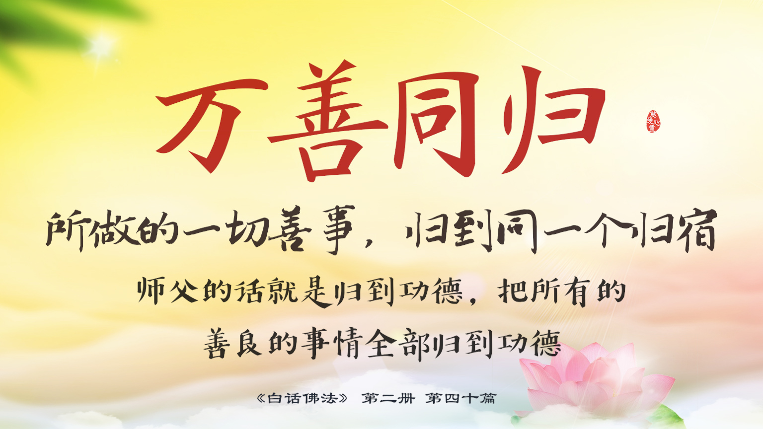 不限会员 2-40-14 万善同归,所做的一切善事,归到同一个归宿。师父的话就是归到功德,把所有的善良的事情全部归到功德。.【图】