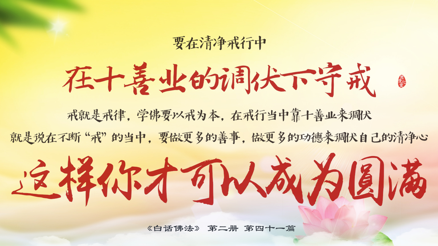 不限会员 2-41-3 要在清净戒行中,在十善业的调伏下守戒...学佛要以戒为本,在戒行当中靠十善业来调伏,就是说在不断“戒”的当中...做更多的功德来调伏自己的清净心,这样你才可以成为圆满。.【图】