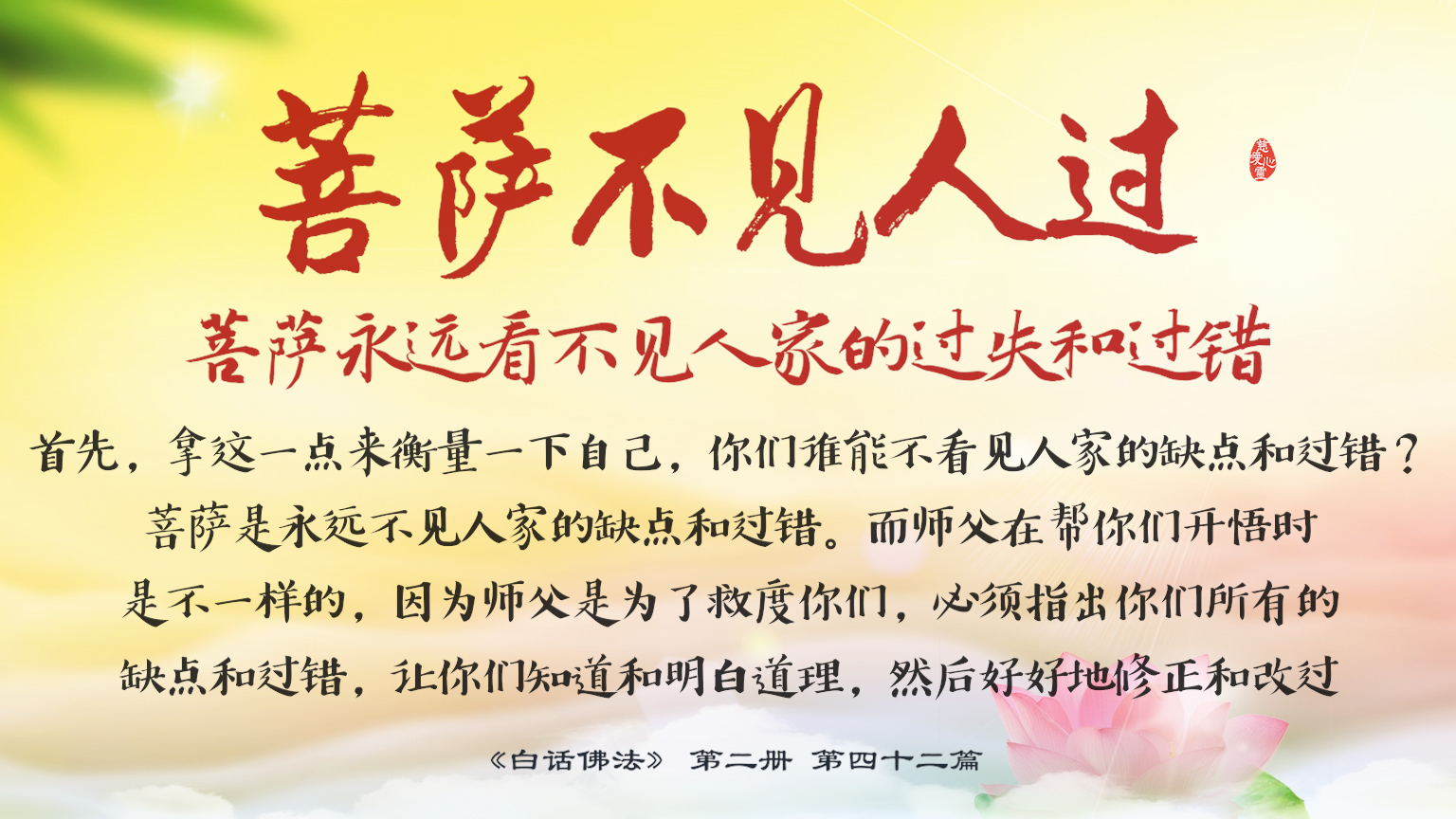 下一篇 : 2-42-9 学菩萨是不能看到人非的,不见人过,但见己过,就