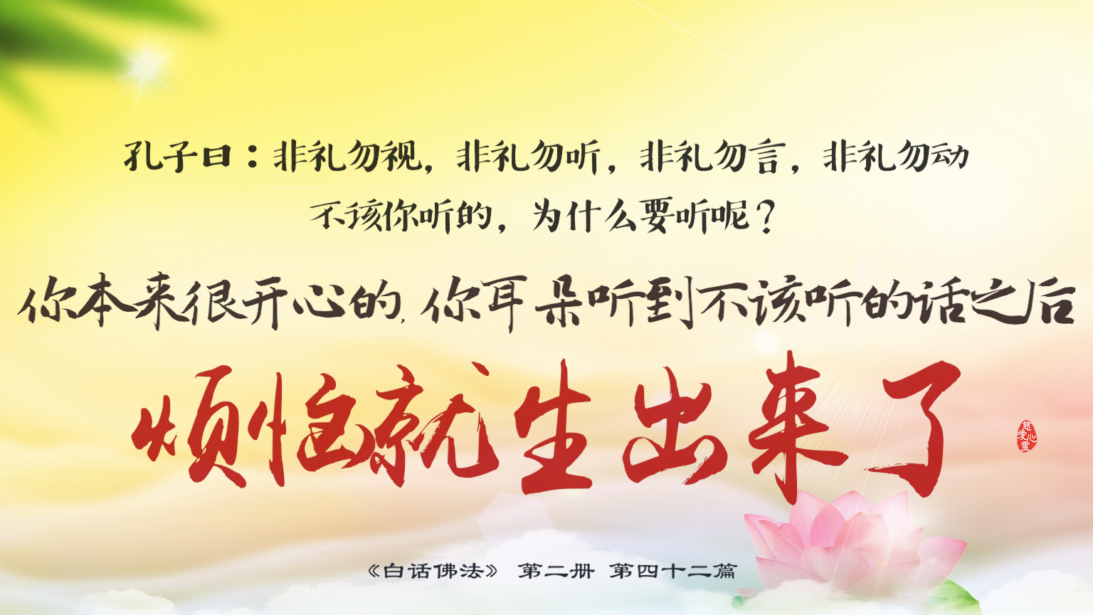 不限会员 2-42-27 孔子曰:非礼勿视,非礼勿听,非礼勿言,非礼勿动。不该你听的,为什么要听呢?你本来很开心的,你耳朵听到不该听的话之后,烦恼就生出来了。.【图】