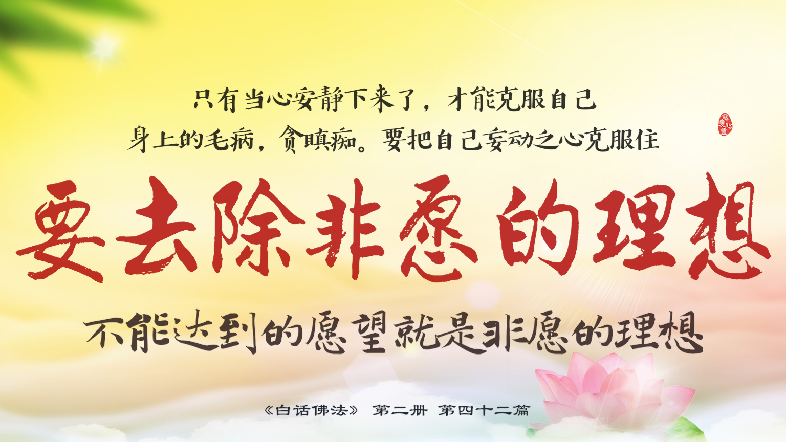 不限会员 2-42-31 只有当心安静下来了,才能克服自己身上的毛病,贪瞋痴。要把自己妄动之心克服住,要去除非愿的理想,不能达到的愿望就是非愿的理想。.【图】