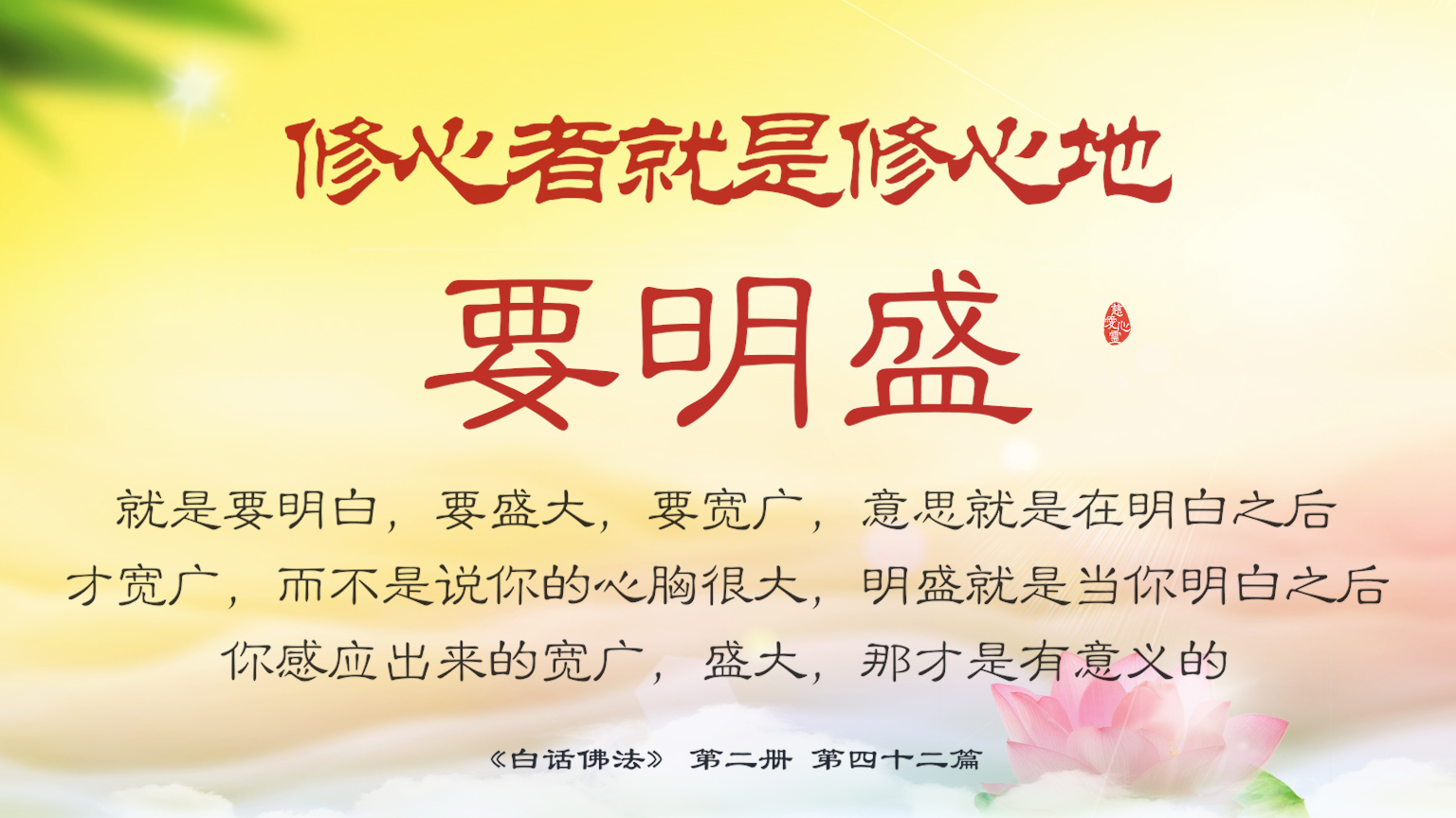 不限会员 2-42-41修心者就是修心地,要明盛,就是要明白,要盛大要宽广,意思就是在明白之后才宽广,而不是说你的心胸很大,明盛就是当你明白之后,你感应出来的宽广,盛大,那才是有意义的.【图】