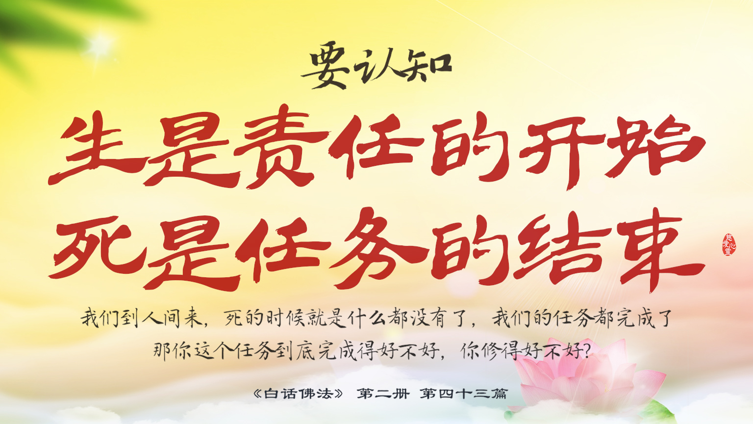 不限会员 2-43-1 要认知生是责任的开始,死是任务的结束。我们到人间来,死的时候就是什么都没有了,我们的任务都完成了。那你这个任务到底完成得好不好,你修得好不好?.【图】