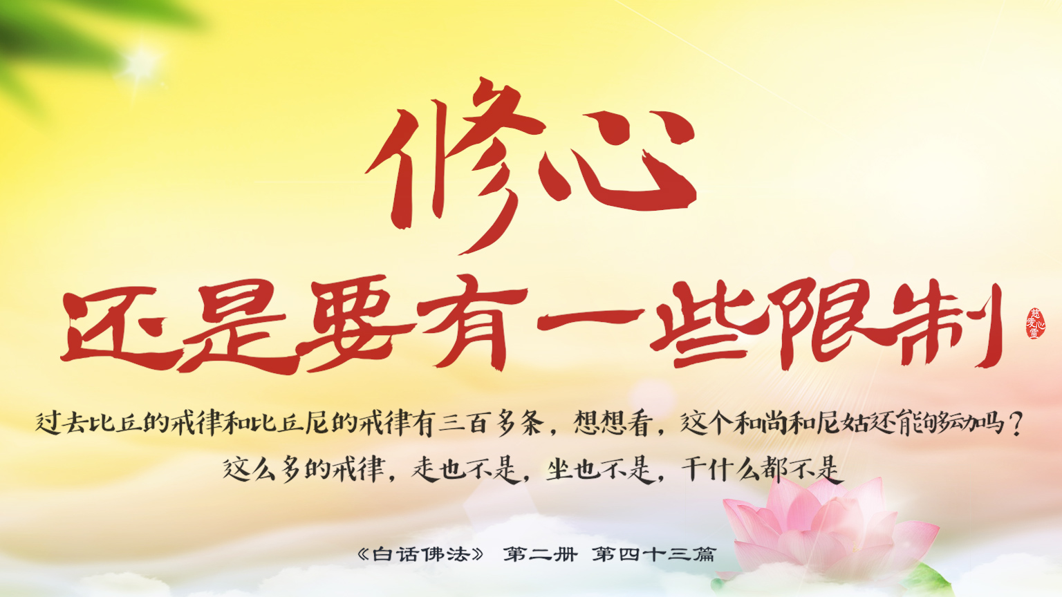 不限会员 2-43-10 修心还是要有一些限制,过去比丘的戒律和比丘尼的戒律有三百多条,想想看,这个和尚和尼姑还能够动吗?这么多的戒律,走也不是,坐也不是,干什么都不是。.【图】