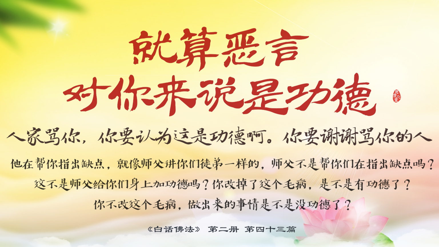 不限会员 2-43-15就算恶言对你来说是功德。人家骂你你要认为这是功德啊。你要谢谢骂你的人。他在帮你指出缺点...你改掉了这个毛病,是不是有功德了?你不改这个毛病做出来的事情是不是没功德了.【图】