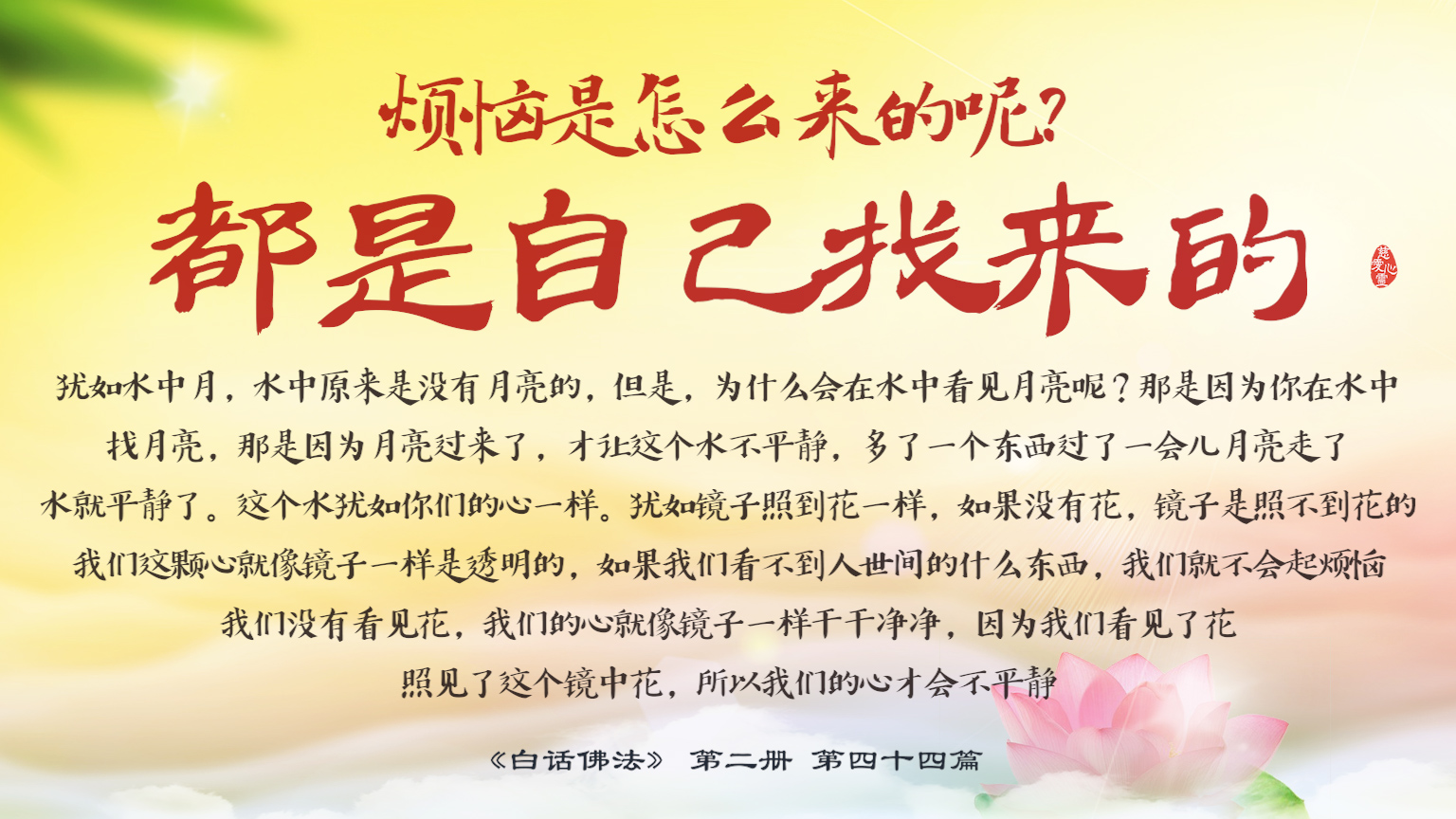 不限会员 2-44-2 烦恼都是自己找来的,我们这颗心就像镜子一样是透明的,如果我们看不到人世间的什么东西,我们就不会起烦恼,因为我们看见了花,照见了这个镜中花,所以我们的心才会不平静.【图】