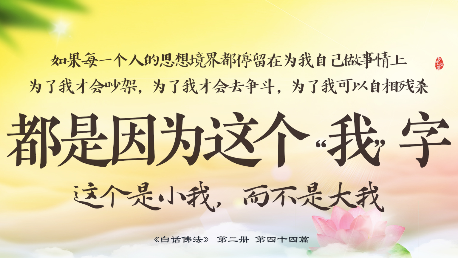 不限会员 2-44-18 如果每一个人的思想境界都停留在为我自己做事情上,为了我才会吵架,为了我才会去争斗,为了我可以自相残杀,都是因为这个“我”字,这个是小我,而不是大我。.【图】