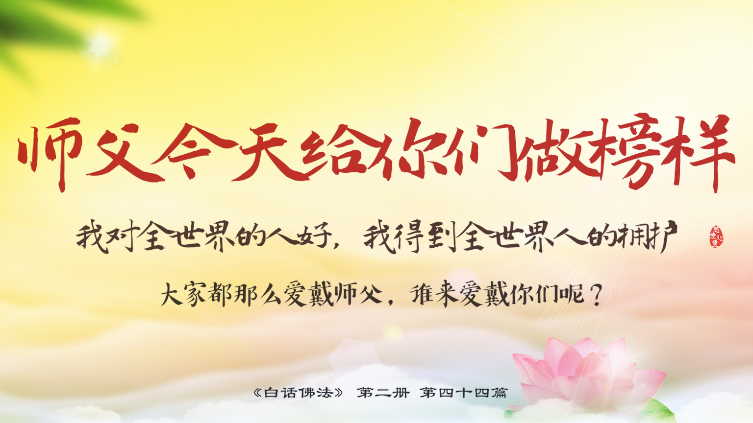 不限会员 2-44-20 师父今天给你们做榜样,我对全世界的人好,我得到全世界人的拥护,大家都那么爱戴师父,谁来爱戴你们呢?.【图】