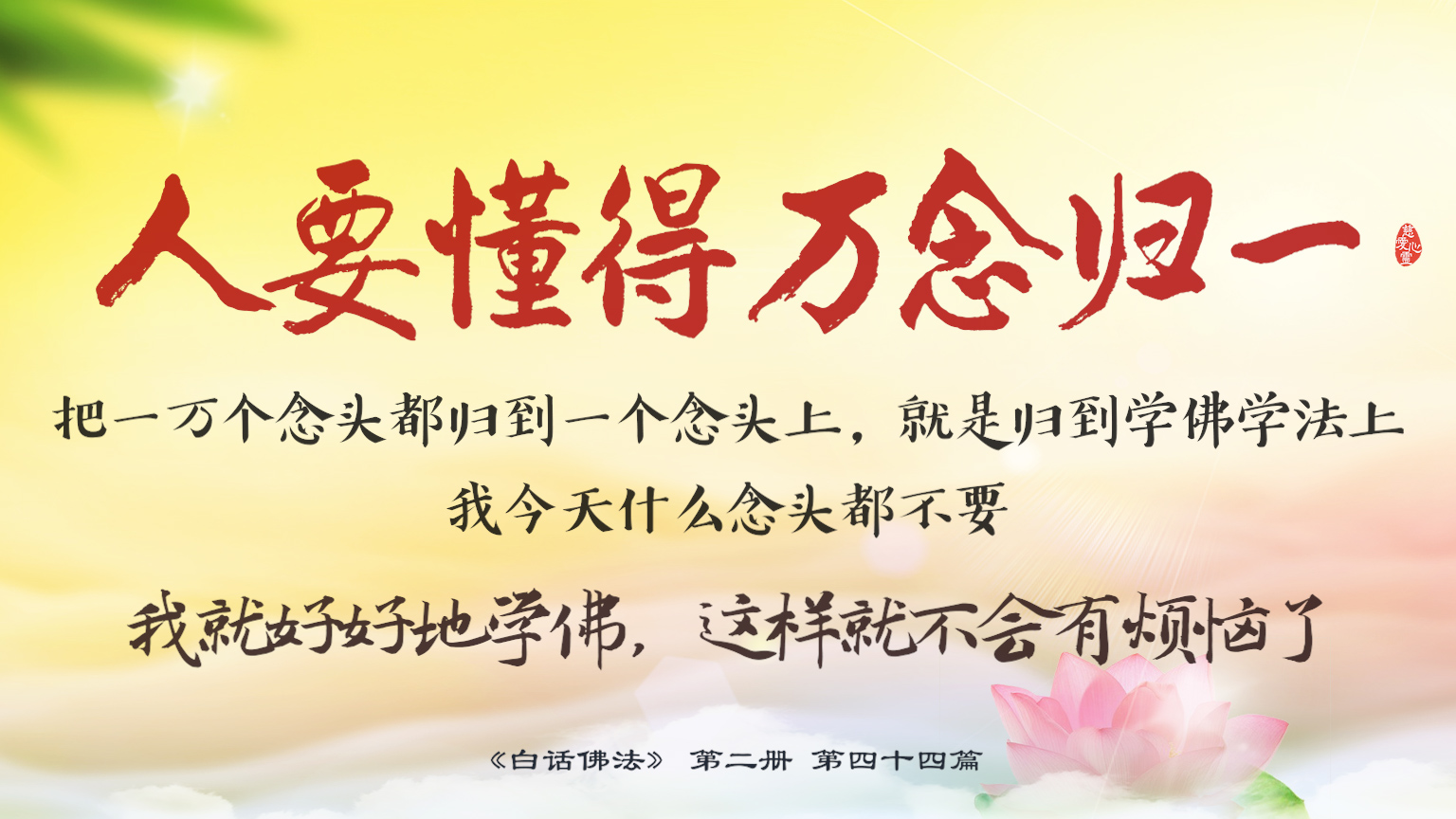 不限会员 2-44-23 人要懂得万念归一,把一万个念头都归到一个念头上,就是归到学佛学法上,我今天什么念头都不要,我就好好地学佛,这样就不会有烦恼了。.【图】