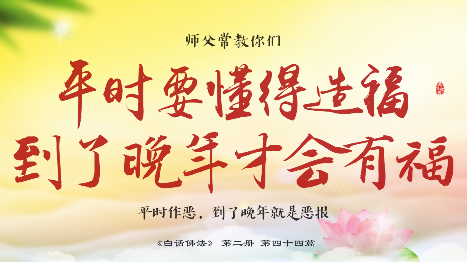 不限会员 2-44-30 师父常教你们平时要懂得造福,到了晚年才会有福,平时作恶,到了晚年就是恶报。.【图】