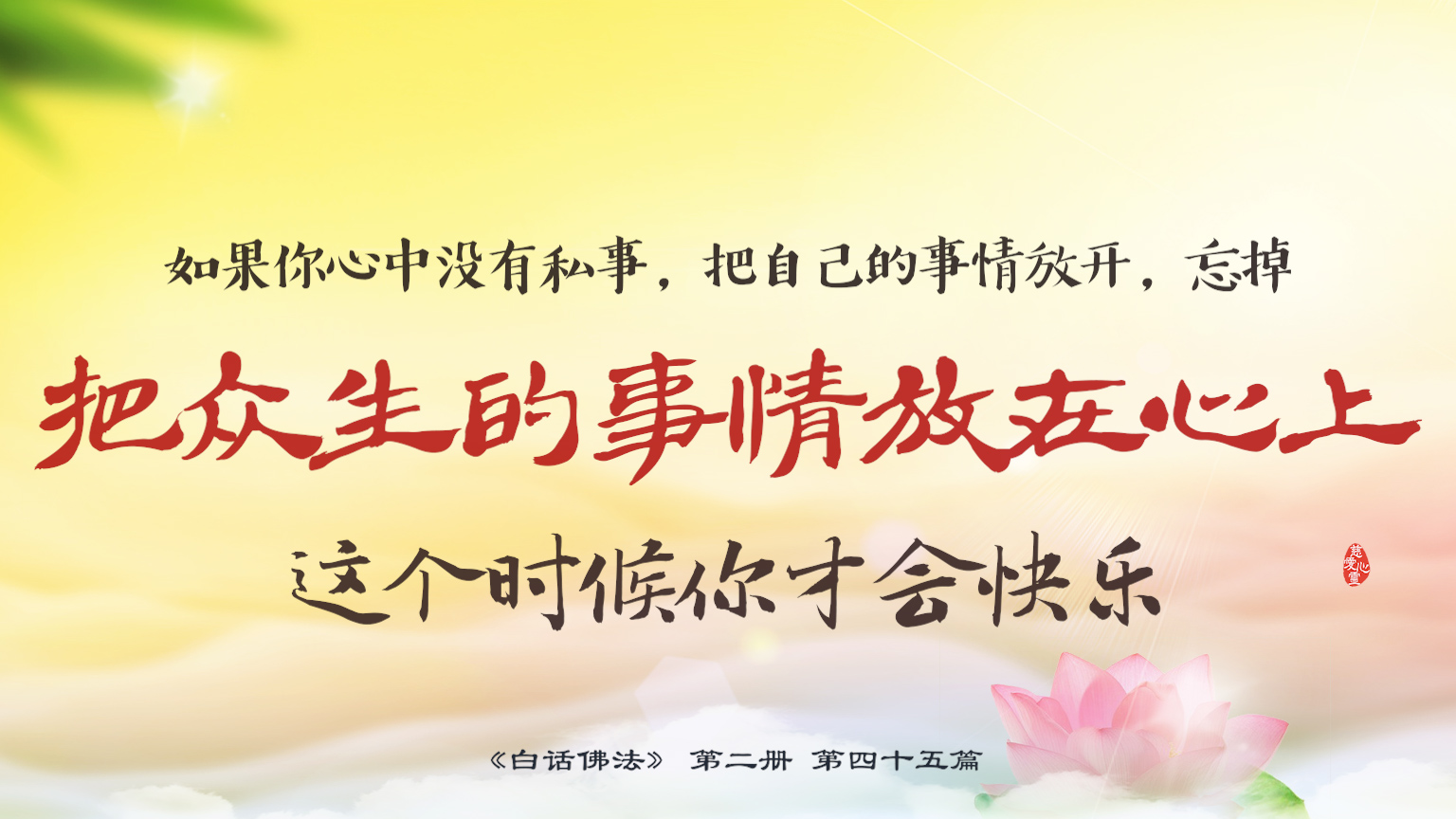 不限会员 2-45-35 如果你心中没有私事,把自己的事情放开,忘掉,把众生的事情放在心上,这个时候你才会快乐。.【图】
