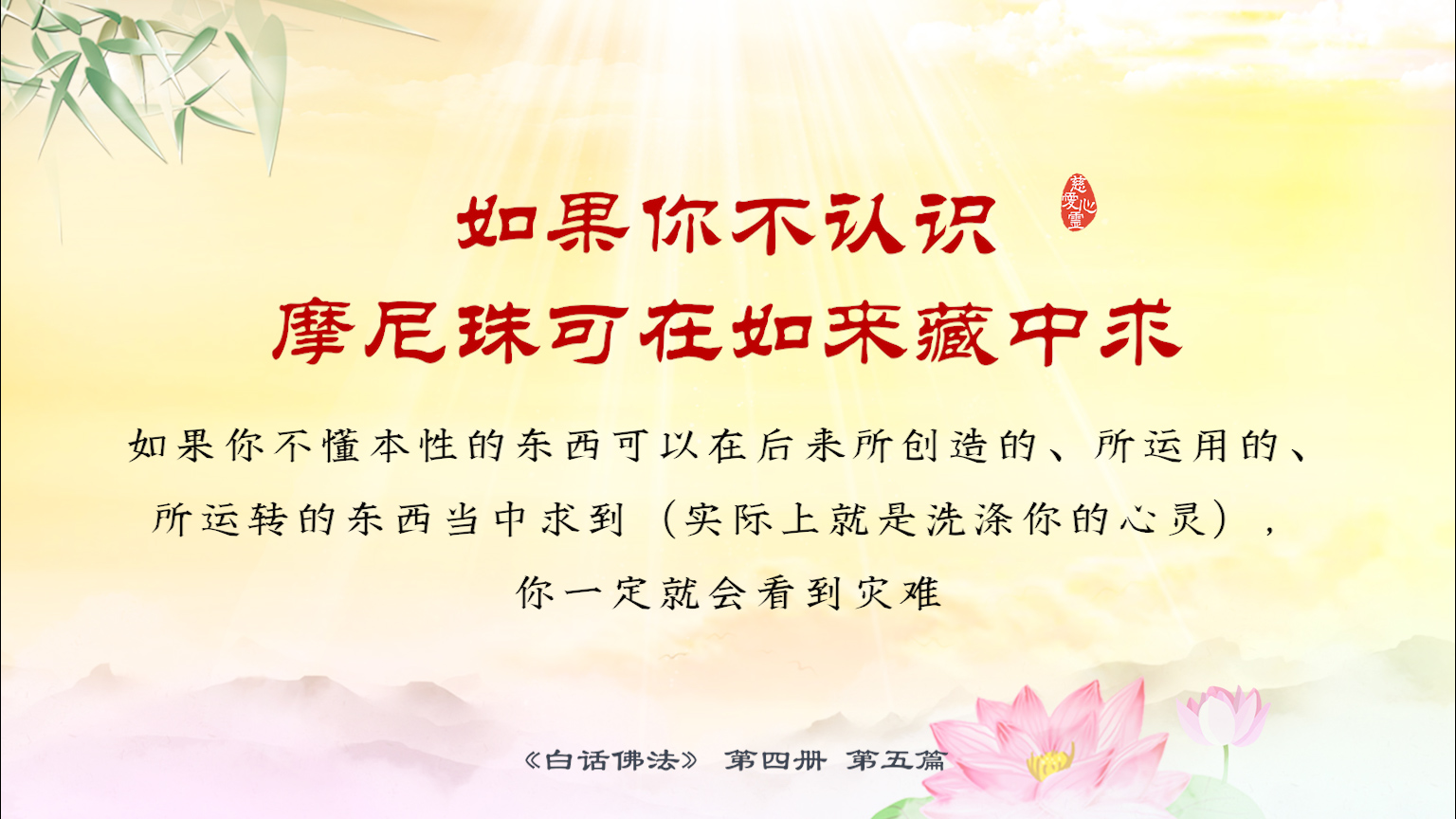 不限会员 4-5-11 如果你不认识摩尼珠可在如来藏中求,如果你不懂本性的东西可以在后来所创造的、所运用的、所运转的东西当中求到(实际上就是洗涤你的心灵),你一定就会看到灾难.【图】