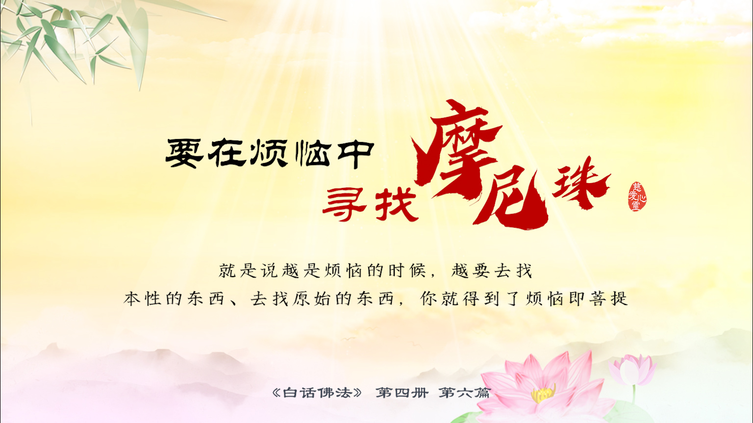 不限会员 4-6-5 要在烦恼中寻找摩尼珠。就是说越是烦恼的时候,越要去找本性的东西、去找原始的东西,你就得到了烦恼即菩提.【图】