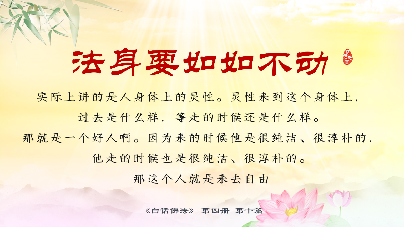 不限会员 4-10-7 法身是什么?就是我们现在这个身体。我们在法界,法身要如如不动,就是不要动,就是如来如去,就是说我的身体跟来的时候一样,去的时候也是这样。.【图】