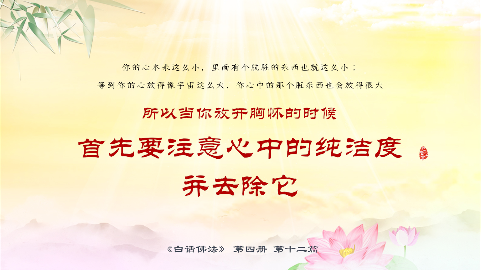 不限会员 4-12-13 你的心本来这么小,里面有个肮脏的东西也就这么小;等到你的心放得像宇宙这么大,你心中的那个脏东西也会放得很大,所以当你放开胸怀的时候,首先要注意心中的纯洁度.【图】