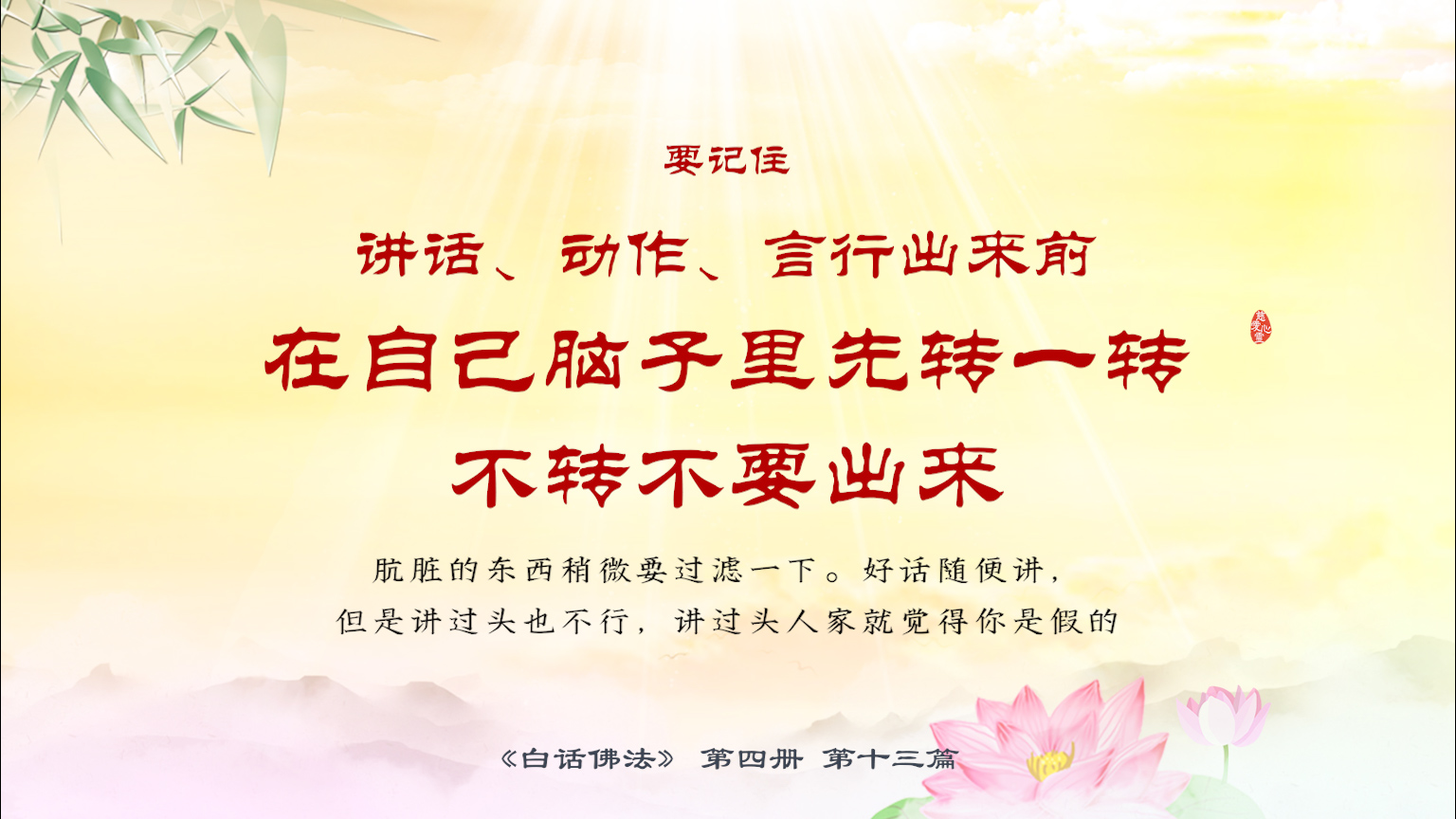 不限会员 4-13-21 要记住,讲话、动作、言行出来前在自己脑子里先转一转,不转不要出来。肮脏的东西稍微要过滤一下。好话随便讲,但是讲过头也不行,讲过头人家就觉得你是假的.【图】