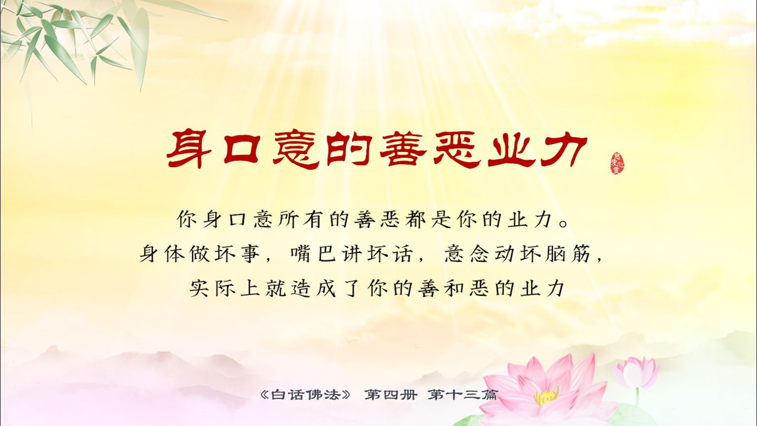 不限会员 4-13-29 身口意的善恶业力。你身口意所有的善恶都是你的业力。身体做坏事,嘴巴讲坏话,意念动坏脑筋,实际上就造成了你的善和恶的业力.【图】