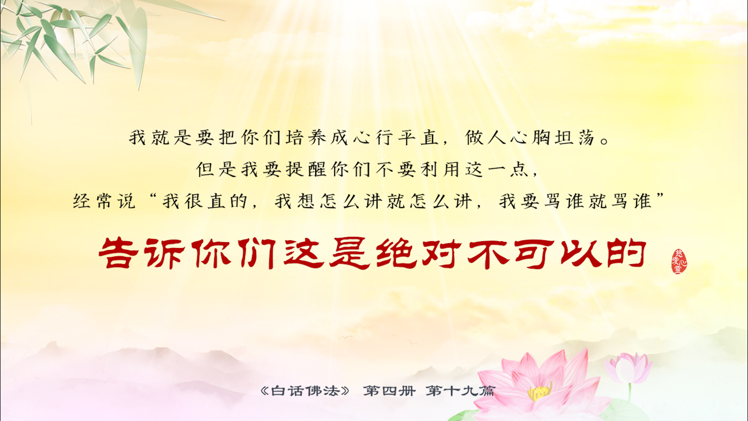 不限会员 4-19-17 我就是要把你们培养成心行平直,做人心胸坦荡。但是我要提醒你们不要利用这一点,经常说“我很直的,我想怎么讲就怎么讲,我要骂谁就骂谁”。告诉你们这是绝对不可以.【图】