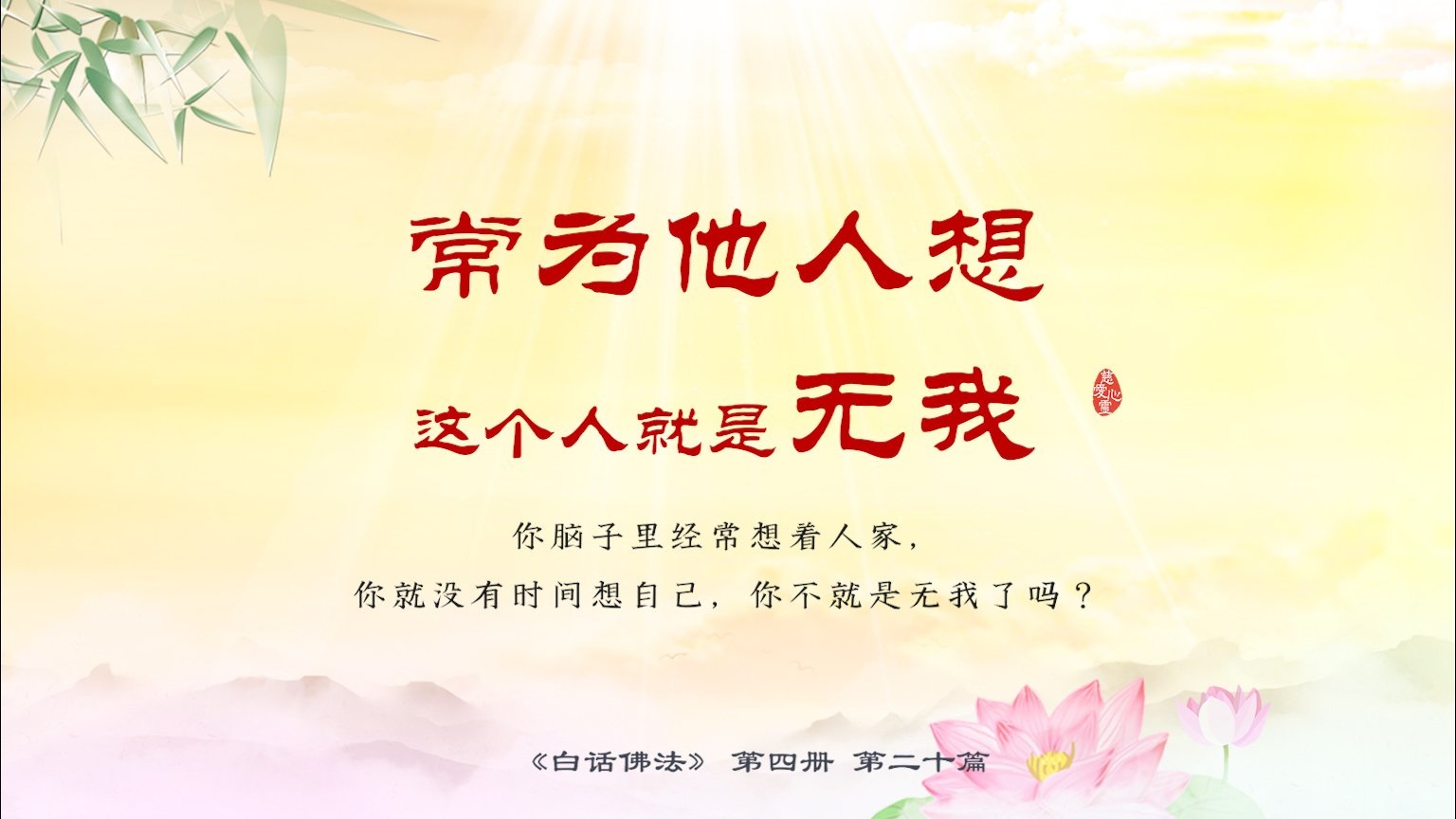 不限会员 4-20-7 常为他人想,这个人就是无我。你脑子里经常想着人家,你就没有时间想自己,你不就是无我了吗?.【图】