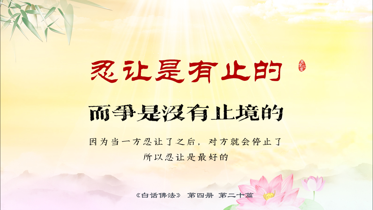 不限会员 4-20-14 忍让是有止的,而争是没有止境的。因为当一方忍让了之后,对方就会停止了,所以忍让是最好的.【图】
