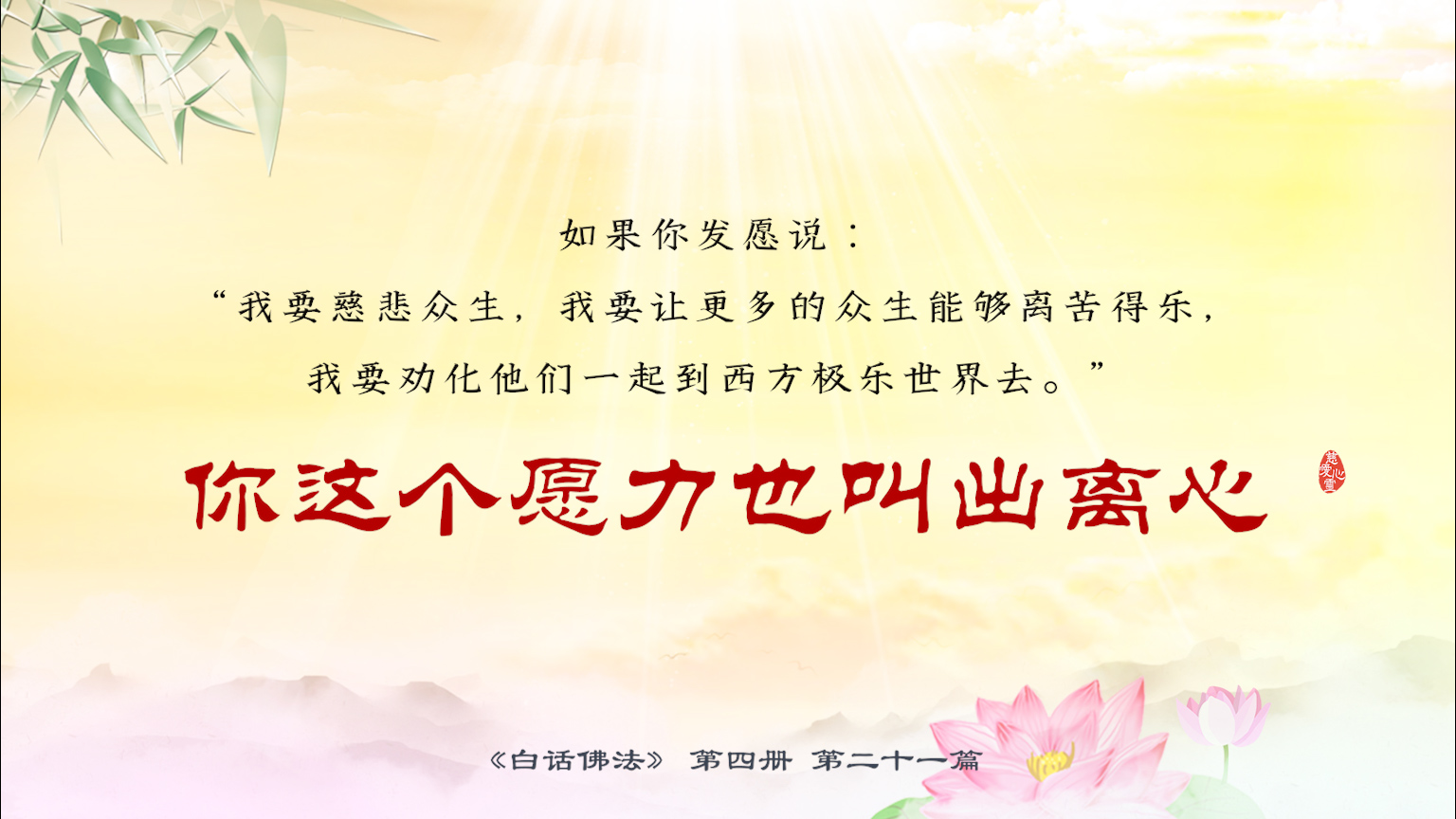 不限会员 4-21-11 如果你发愿说:“我要慈悲众生,我要让更多的众生能够离苦得乐,我要劝化他们一起到西方极乐世界去。”你这个愿力也叫出离心.【图】