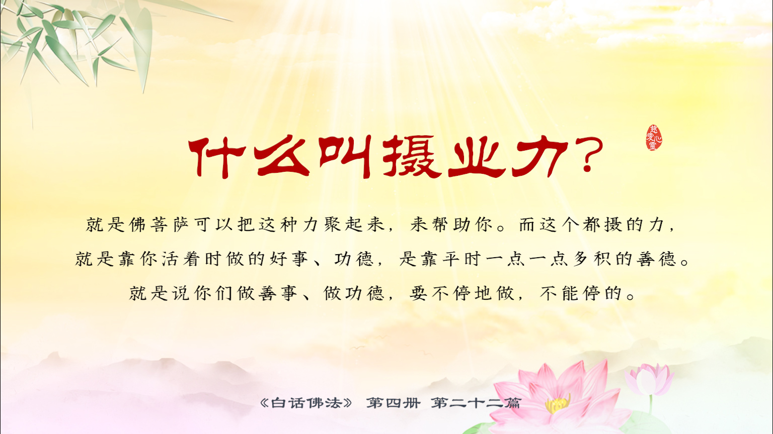 不限会员 4-22-15 什么叫摄业力?就是佛菩萨可以把这种力聚起来,来帮助你。而这个都摄的力,就是靠你活着时做的好事、功德,是靠平时一点一点多积的善德.【图】