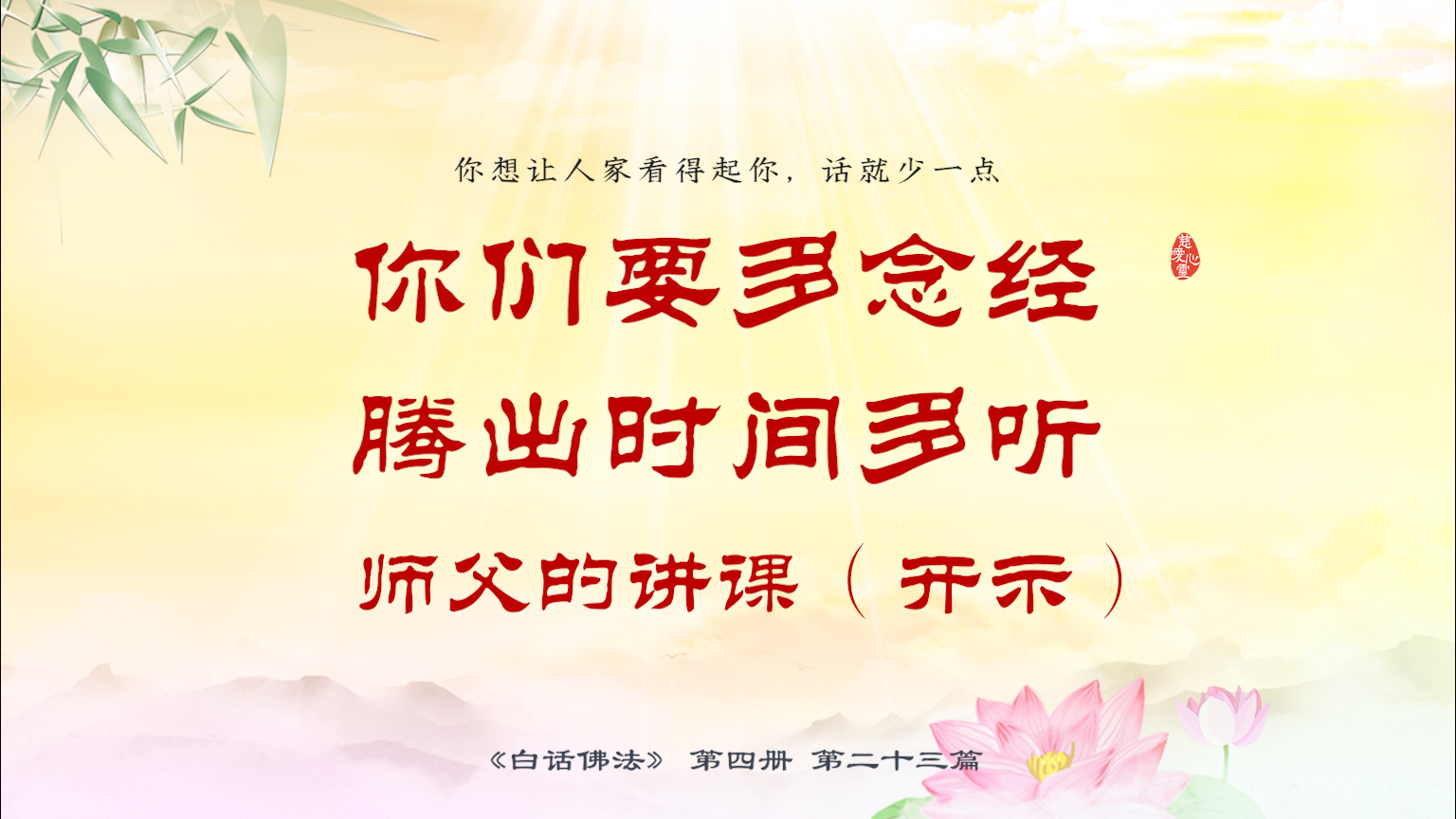 不限会员 4-23-15 你想让人家看得起你,话就少一点。你们要多念经,腾出时间多听师父的讲课(开示).【图】
