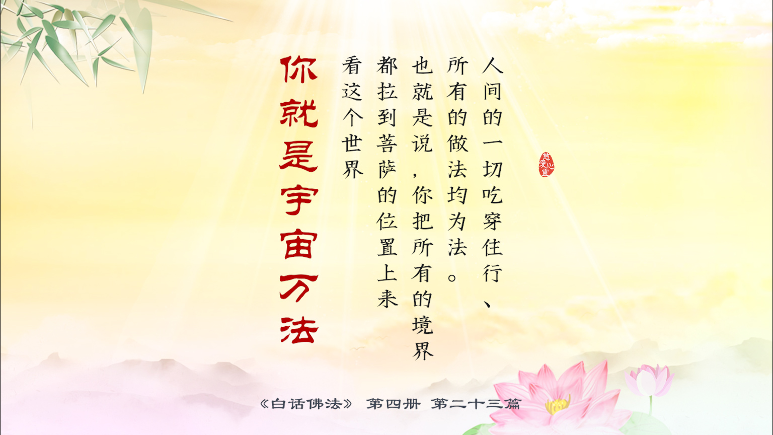 不限会员 4-23-19 人间的一切吃穿住行、所有的做法均为法。也就是说,你把所有的境界都拉到菩萨的位置上来看这个世界,你就是宇宙万法.【图】
