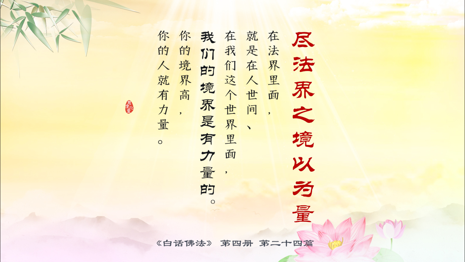 不限会员 4-24-5 “尽法界之境以为量”。在法界里面,就是在人世间、在我们这个世界里面,我们的境界是有力量的。你的境界高,你的人就有力量.【图】