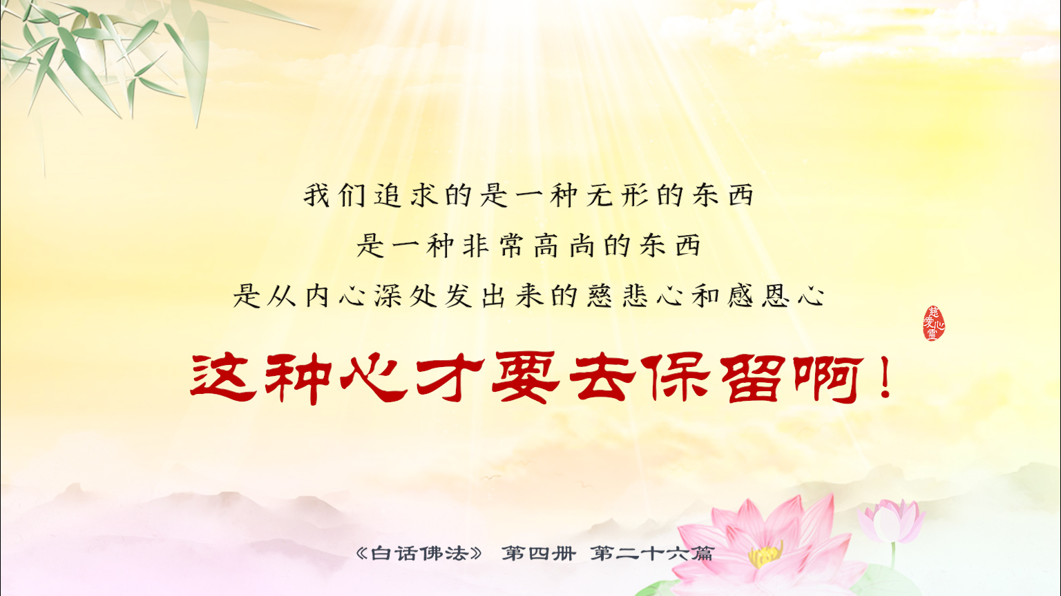 不限会员 4-26-5 我们追求的是一种无形的东西,是一种非常高尚的东西,是从内心深处发出来的慈悲心和感恩心。这种心才要去保留啊.【图】
