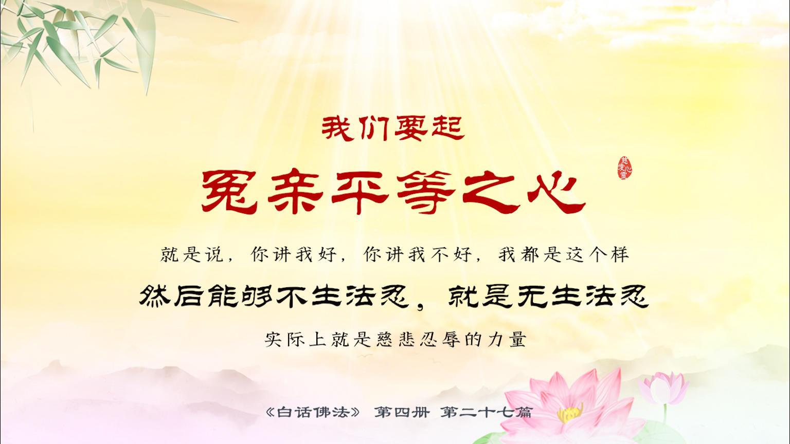 不限会员 4-27-13 我们要起冤亲平等之心。就是说,你讲我好,你讲我不好,我都是这个样。然后能够不生法忍,就是无生法忍。实际上就是慈悲忍辱的力量.【图】