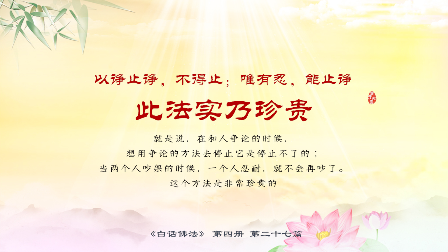 不限会员 4-27-25 “以诤止诤,不得止;唯有忍,能止诤;此法实乃珍贵”。就是说,在和人争论的时候,想用争论的方法去停止它是停止不了的.【图】