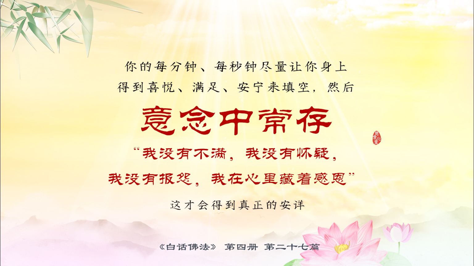 不限会员 4-27-29 你的每分钟、每秒钟尽量让你身上得到喜悦、满足、安宁来填空,然后意念中常存“我没有不满,我没有怀疑,我没有报怨,我在心里藏着感恩”,这才会得到真正的安详.【图】