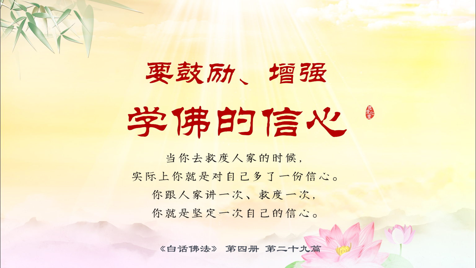 不限会员 4-29-6 要鼓励、增强学佛的信心。当你去救度人家的时候,实际上你就是对自己多了一份信心。你跟人家讲一次、救度一次,你就是坚定一次自己的信心.【图】