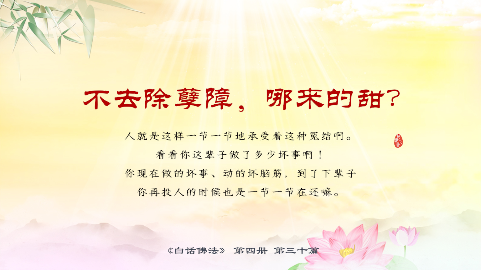 不限会员 4-30-26 不去除孽障,哪来的甜?人就是这样一节一节地承受着这种冤结啊。看看你这辈子做了多少坏事啊!你现在做的坏事、动的坏脑筋,到了下辈子你再投人的时候也是一节一节在.【图】