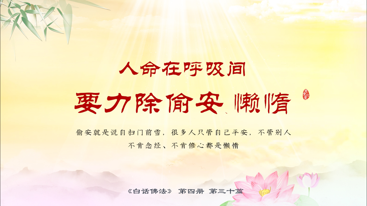 不限会员 4-30-42 人命在呼吸间,要力除偷安、懒惰。偷安就是说自扫门前雪,很多人只管自己平安,不管别人。不肯念经、不肯修心都是懒惰.【图】