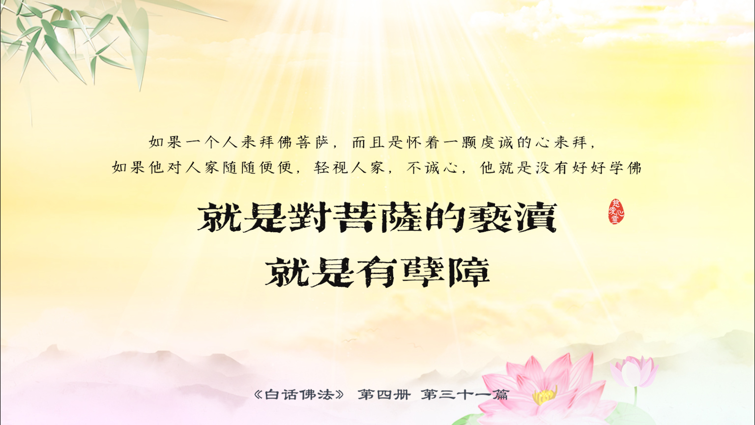 不限会员 4-31-4 如果一个人来拜佛菩萨,而且是怀着一颗虔诚的心来拜,如果他对人家随随便便,轻视人家,不诚心,他就是没有好好学佛,就是对菩萨的亵渎,就是有孽障.【图】