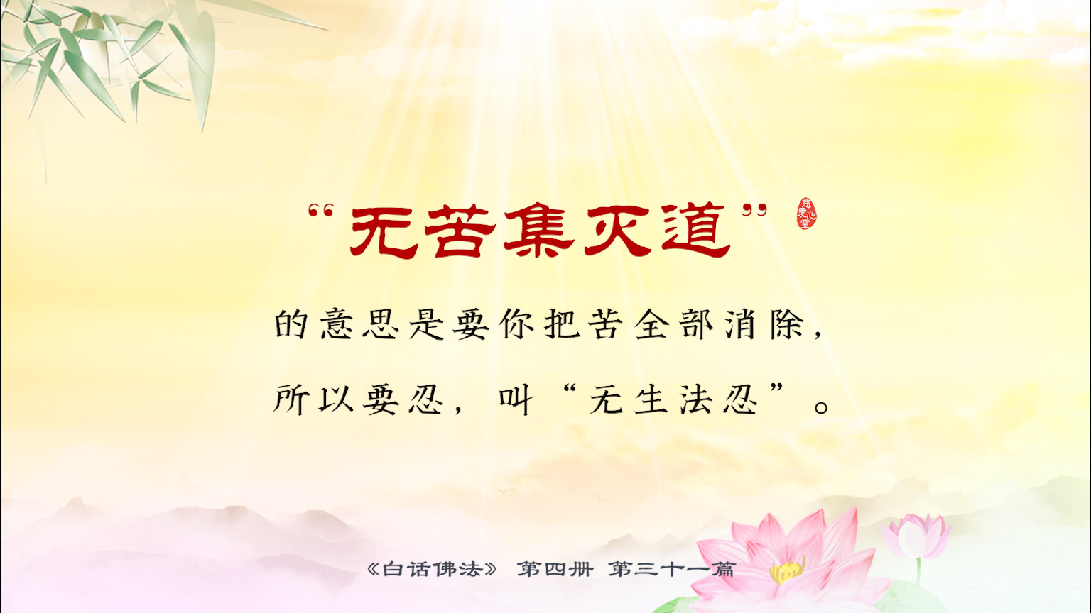 不限会员 4-31-35 “无苦集灭道”的意思是要你把苦全部消除,所以要忍,叫“无生法忍”.【图】