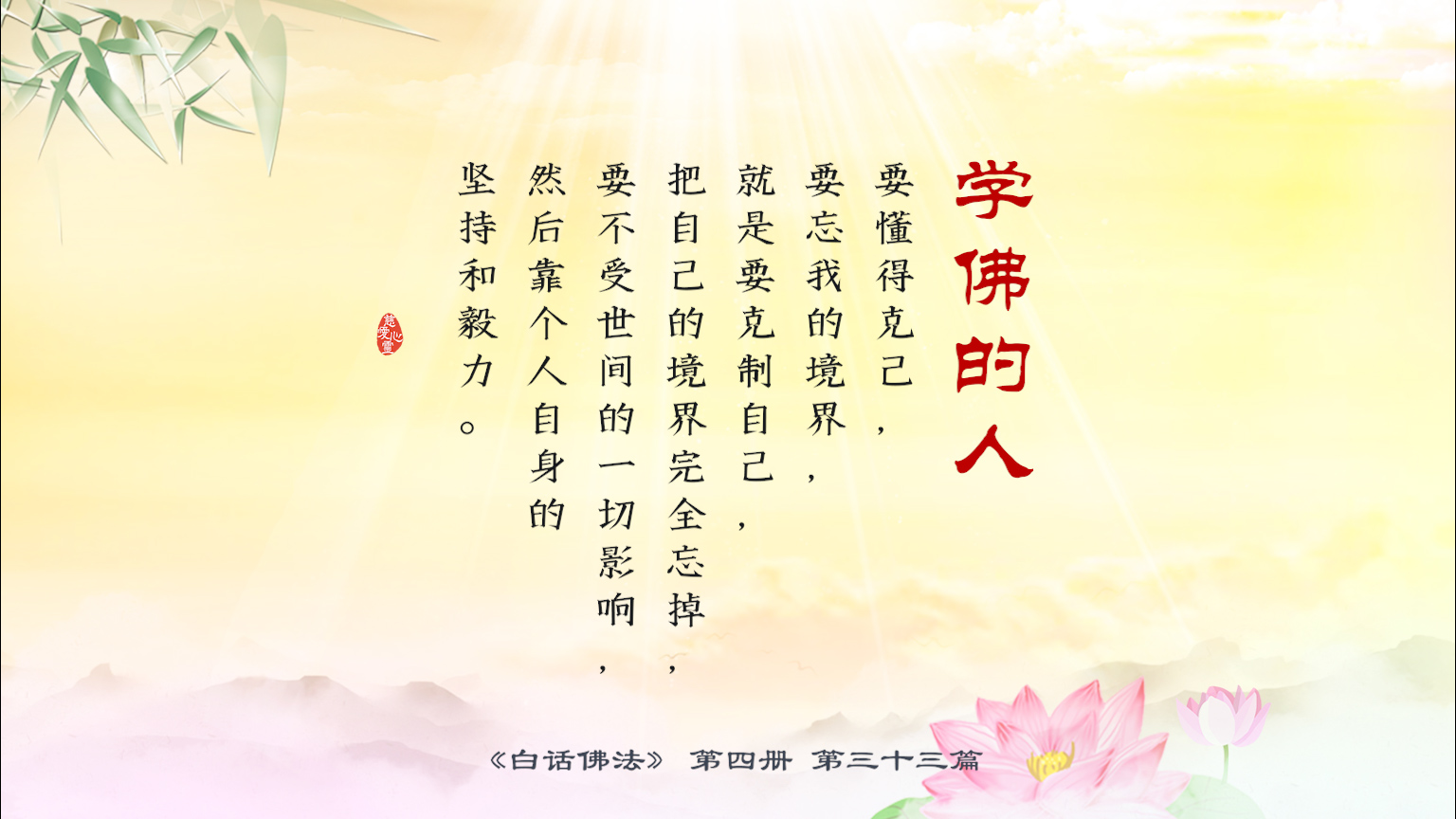 不限会员 4-33-14 学佛的人要懂得克己,要忘我的境界,就是要克制自己,把自己的境界完全忘掉,要不受世间的一切影响,然后靠个人自身的坚持和毅力.【图】