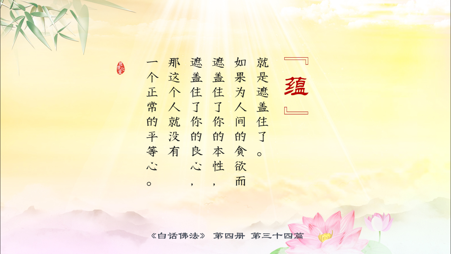 不限会员 4-34-9“蕴”就是遮盖住了。如果为人间的贪欲而遮盖住了你的本性,遮盖住了你的良心,那这个人就没有一个正常的平等心.【图】