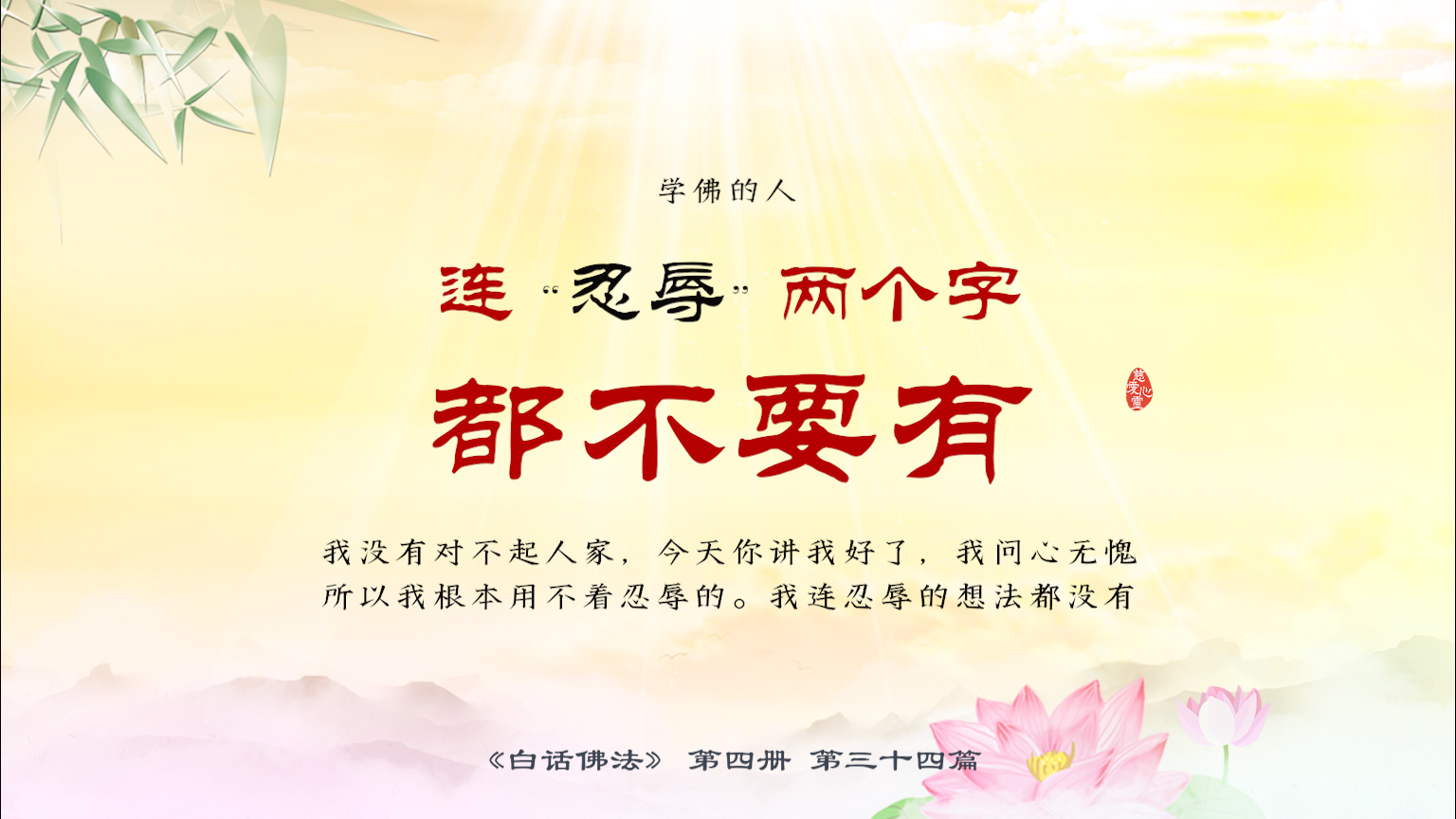 不限会员 4-34-28 学佛的人连“忍辱”两个字都不要有。我没有对不起人家,今天你讲我好了,我问心无愧,所以我根本用不着忍辱的。我连忍辱的想法都没有.【图】