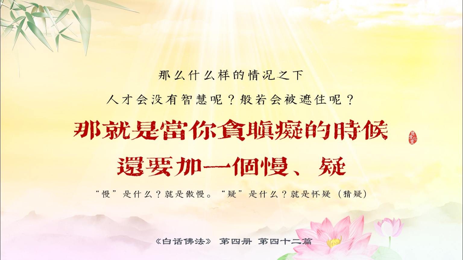 不限会员 4-42-6 那么什么样的情况之下人才会没有智慧呢?般若会被遮住呢?那就是当你贪瞋痴的时候,还要加一个慢、疑。“慢”是什么?就是傲慢。“疑”是什么?就是怀疑(猜疑).【图】