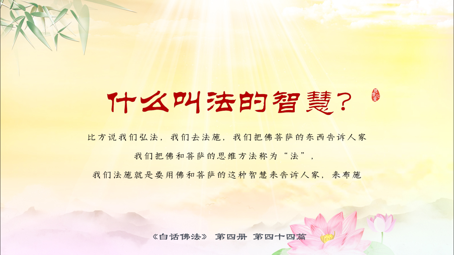 不限会员 4-44-7 什么叫法的智慧?比方说我们弘法,我们去法施,我们把佛菩萨的东西告诉人家,我们把佛和菩萨的思维方法称为“法”,我们法施就是要用佛和菩萨的这种智慧来告诉人家,.【图】